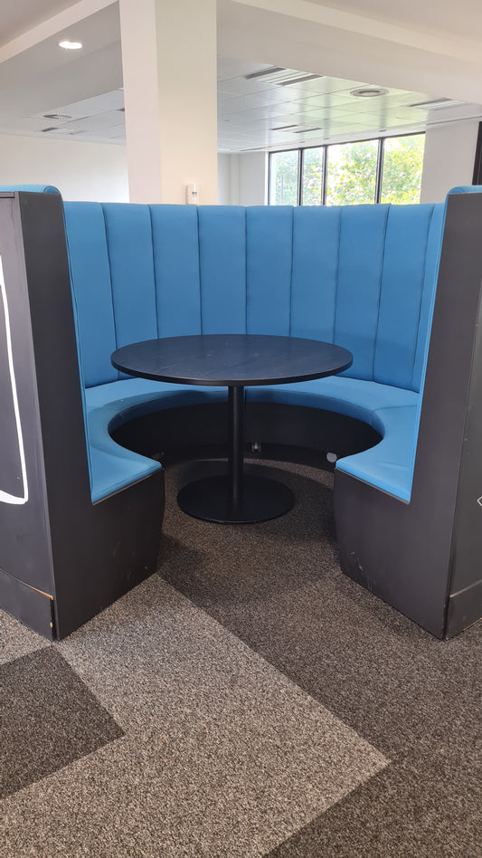 10 Seater Black Blue High Back Acoustic Meeting Booth on castors (Height= 140cm Diameter= 250cm)