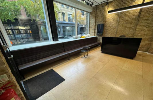 Office Reception Seating, Chocolate brown Marelli strip settee