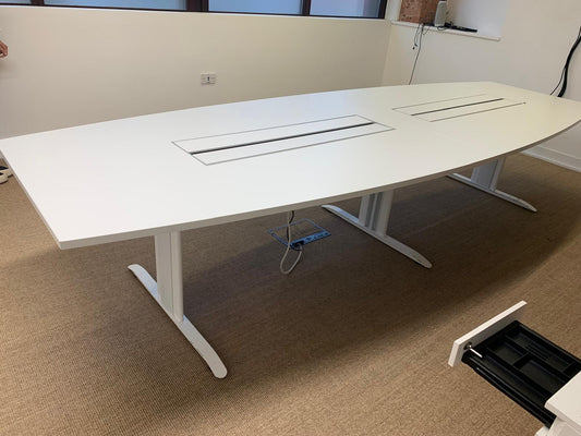 Used Boardroom Table White Frovi Large with Power Modules W3000 x W1200