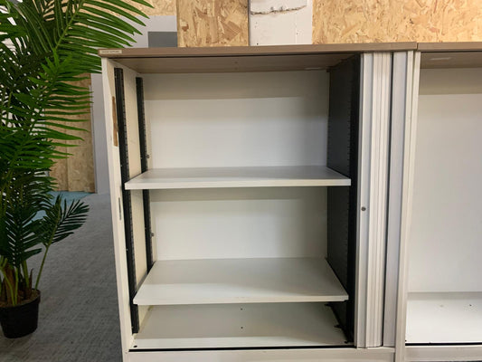 Used Grey office cabinet storage rolling door unit two door W= 100cm D=48cm H=98cm