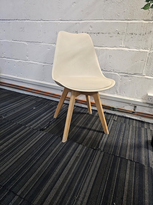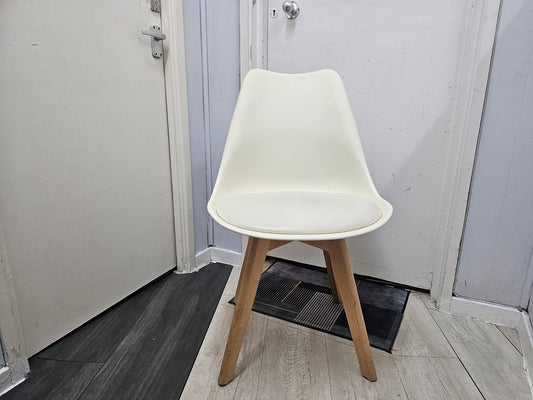 White Chair with Eiffel-Style Wooden Legs