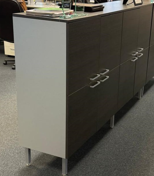 Pre-owned Brown 2 storey extra long office cabinet 8 door 200cm w x 44cm d x 120cm h