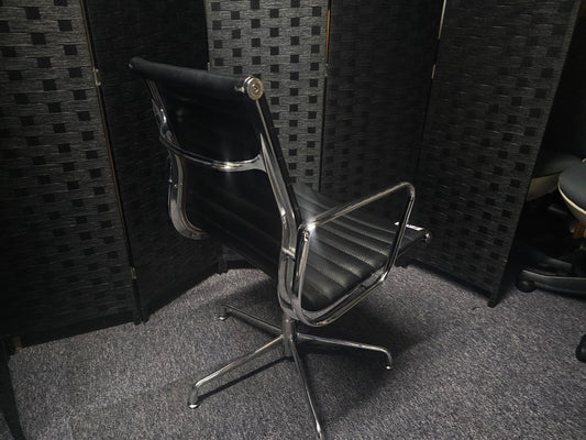 Black leatherette Swivel Meeting Chair- Ribbed Auto-Return Swivel Chair