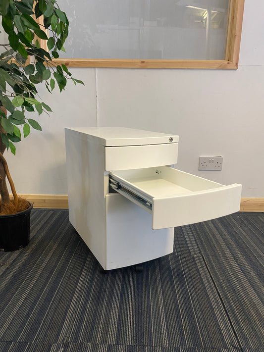 Slimline / Narrow 3 Drawer White Office Under Desk Pedestal / Filing Drawers (D= 55.5cm W= 31cm H= 56cm)