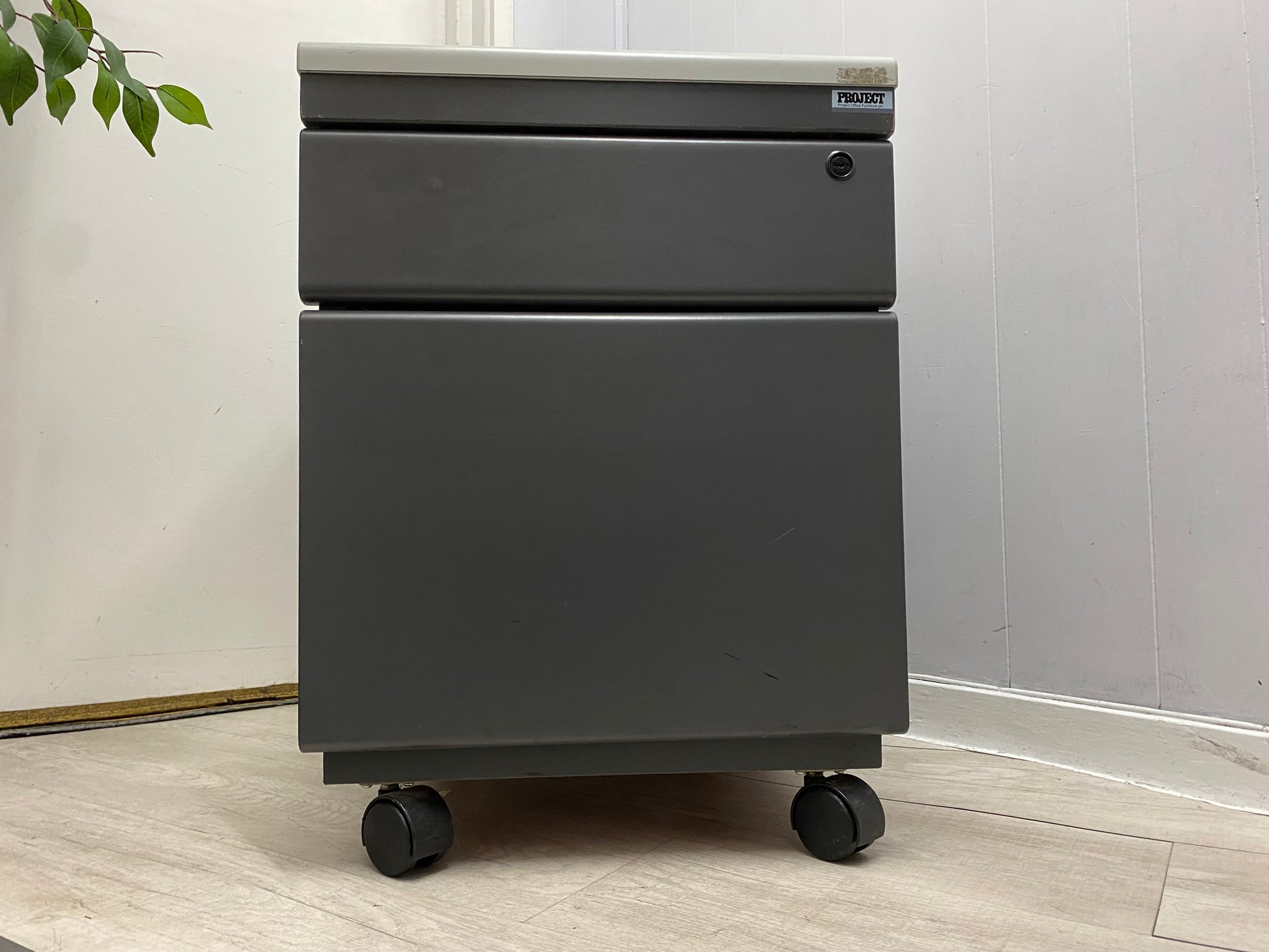 This dark grey 2-drawer mobile filing cabinet offers efficient under-desk storage for your office essentials. Designed for mobility, it easily rolls into place, providing secure and organized filing space without sacrificing floor area.