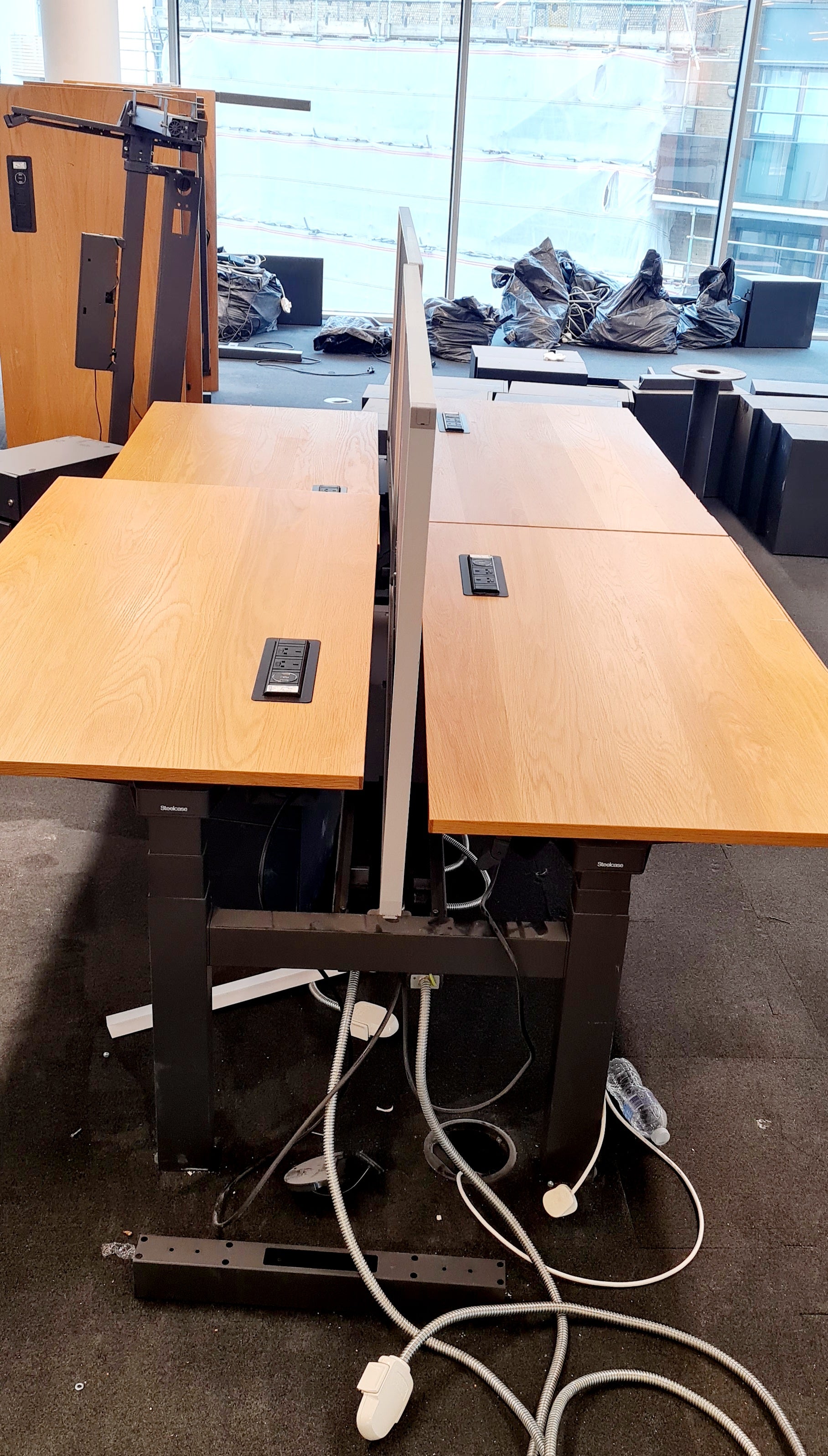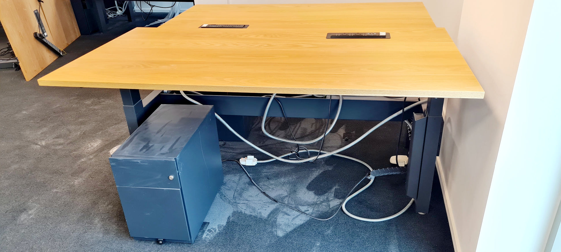 This 2-person electric desk, measuring 1600mm wide by 800mm deep, offers seamless height adjustability to support ergonomic working positions. Designed for shared workspaces, it enables users to alternate between sitting and standing effortlessly, promoting better posture and reducing fatigue. Ideal for collaborative settings, this desk combines functionality with modern office ergonomics.