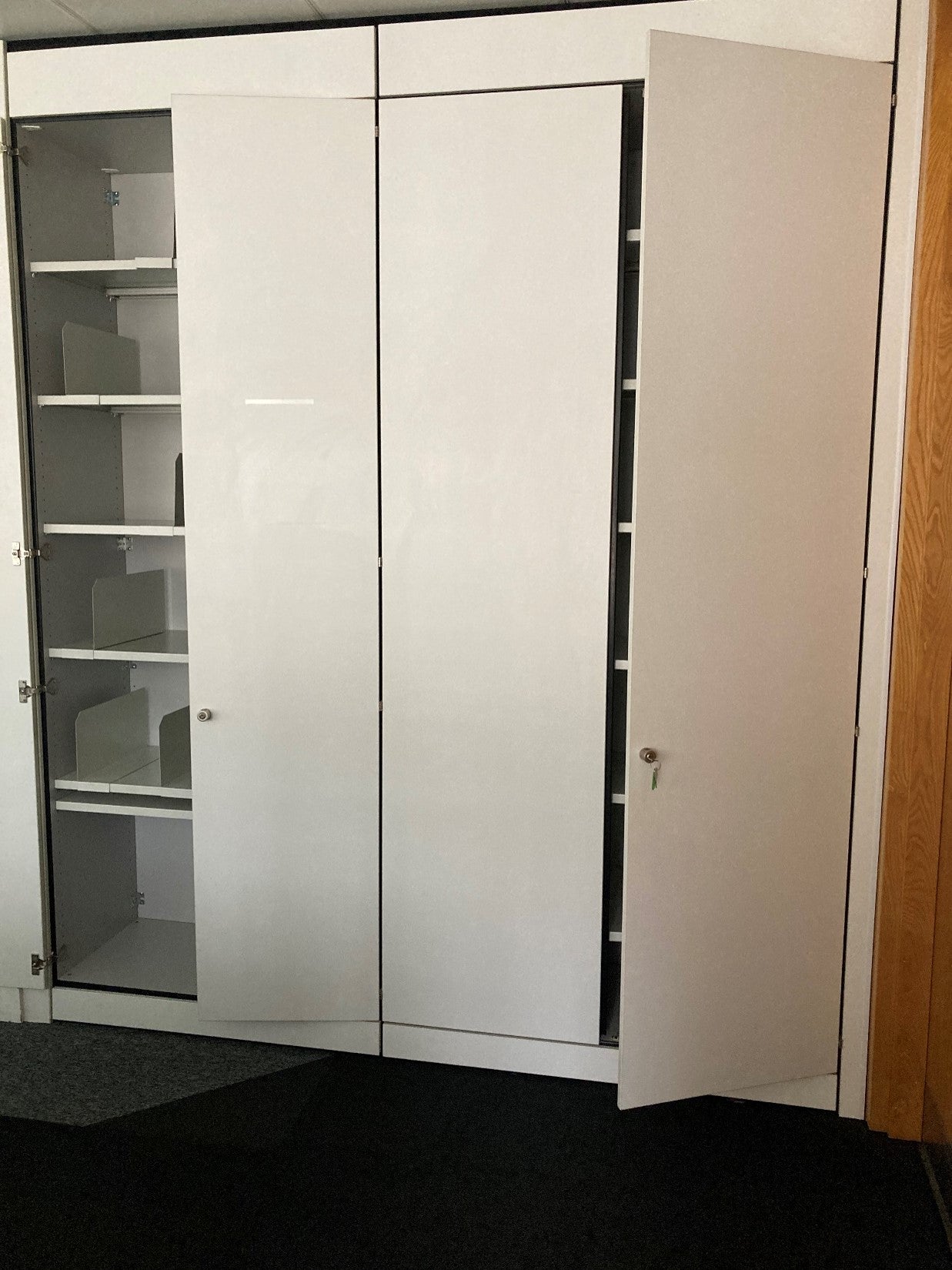 This lockable double-door office storage unit offers secure and spacious storage for your filing and office essentials. Designed for efficient organization, this unit maximizes vertical space, making it ideal for maintaining a tidy and secure workspace.
