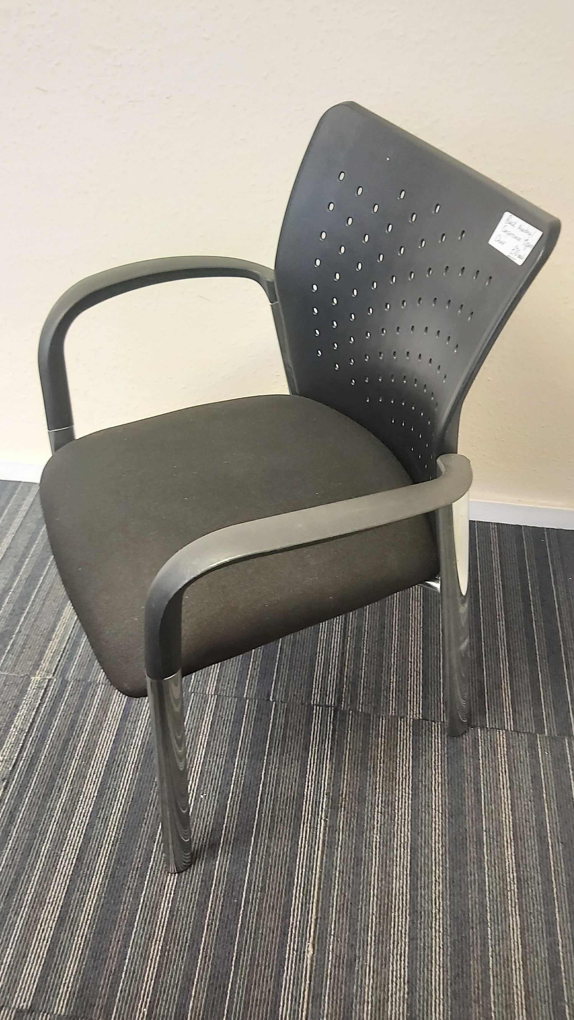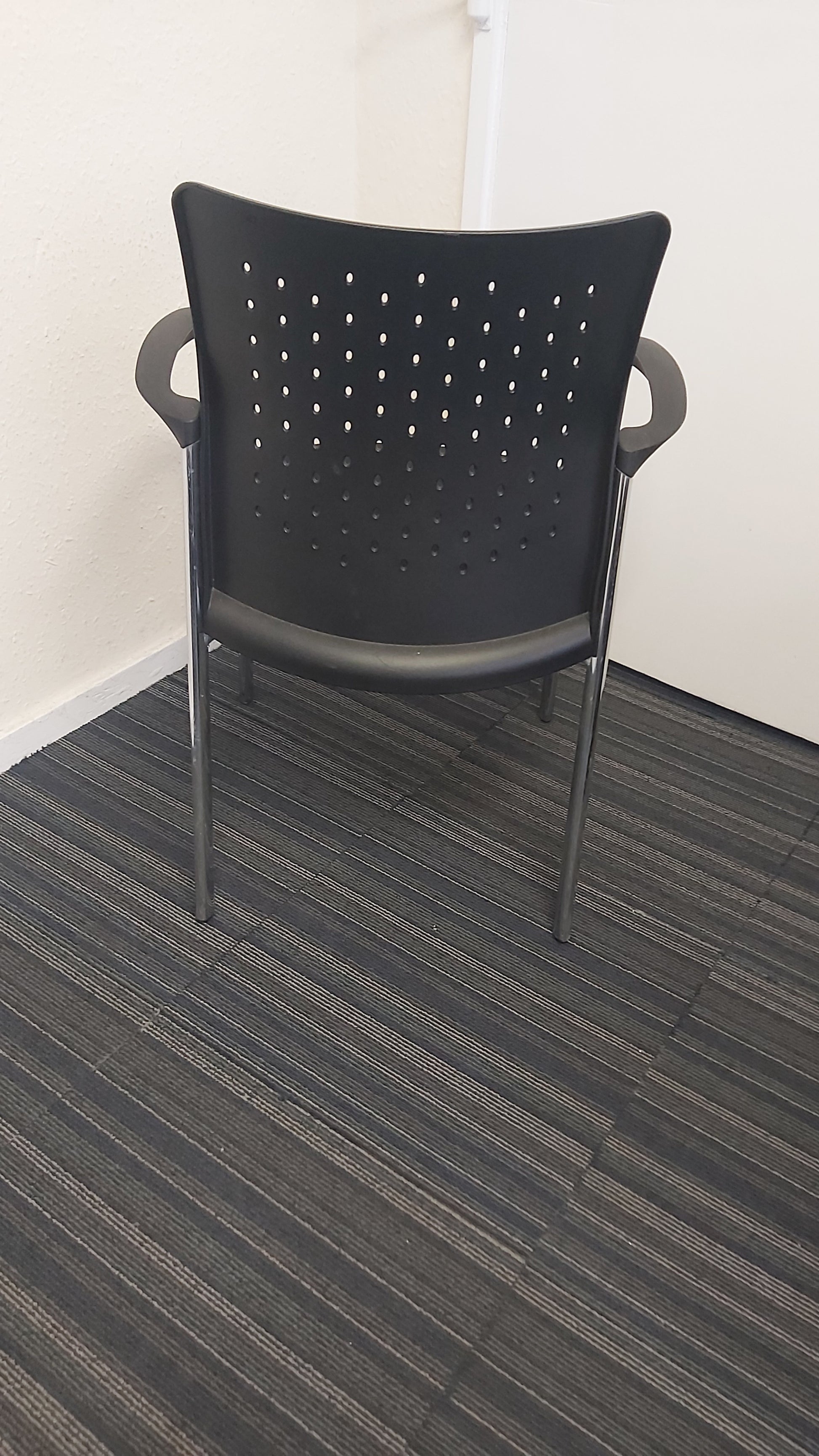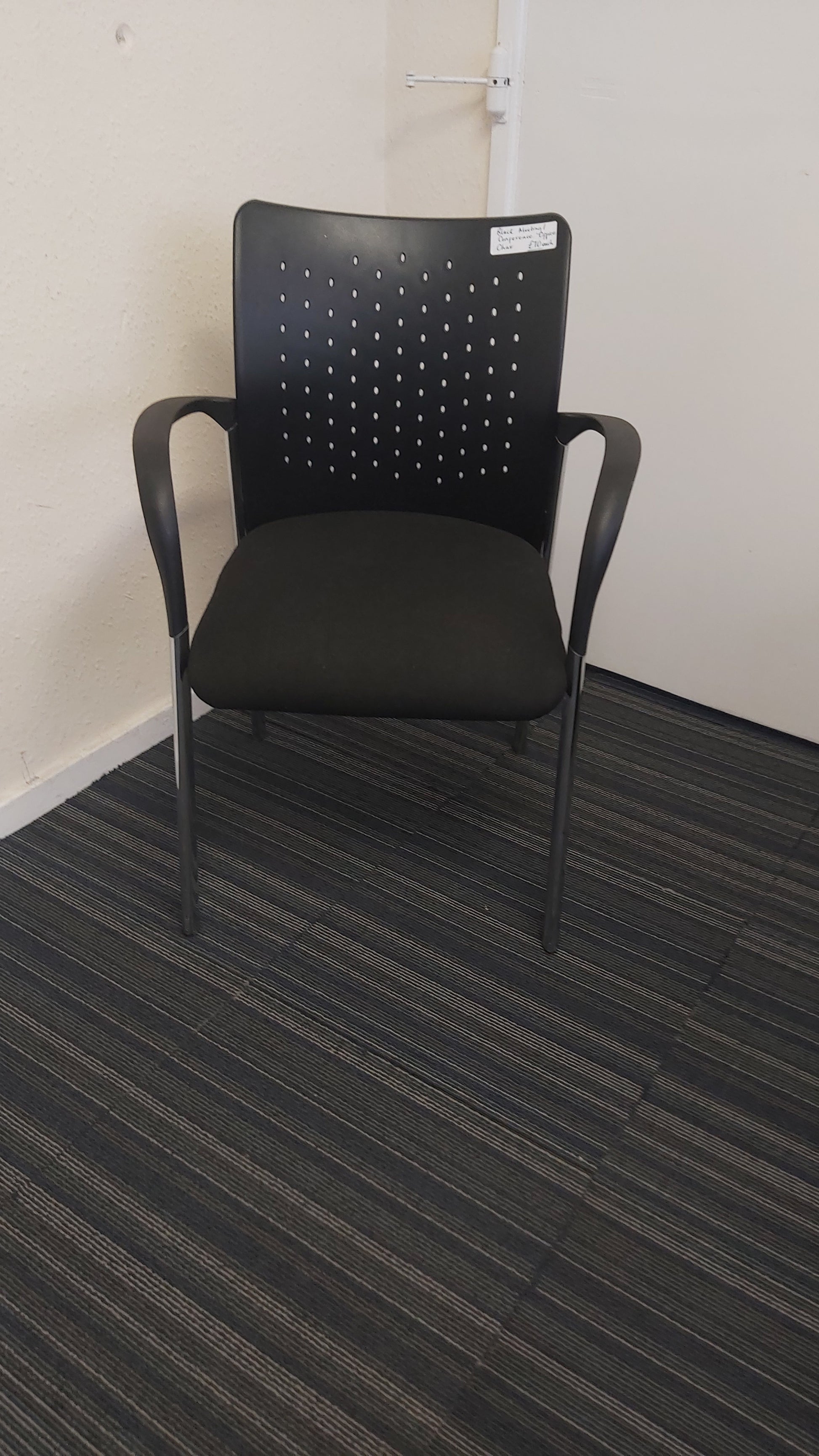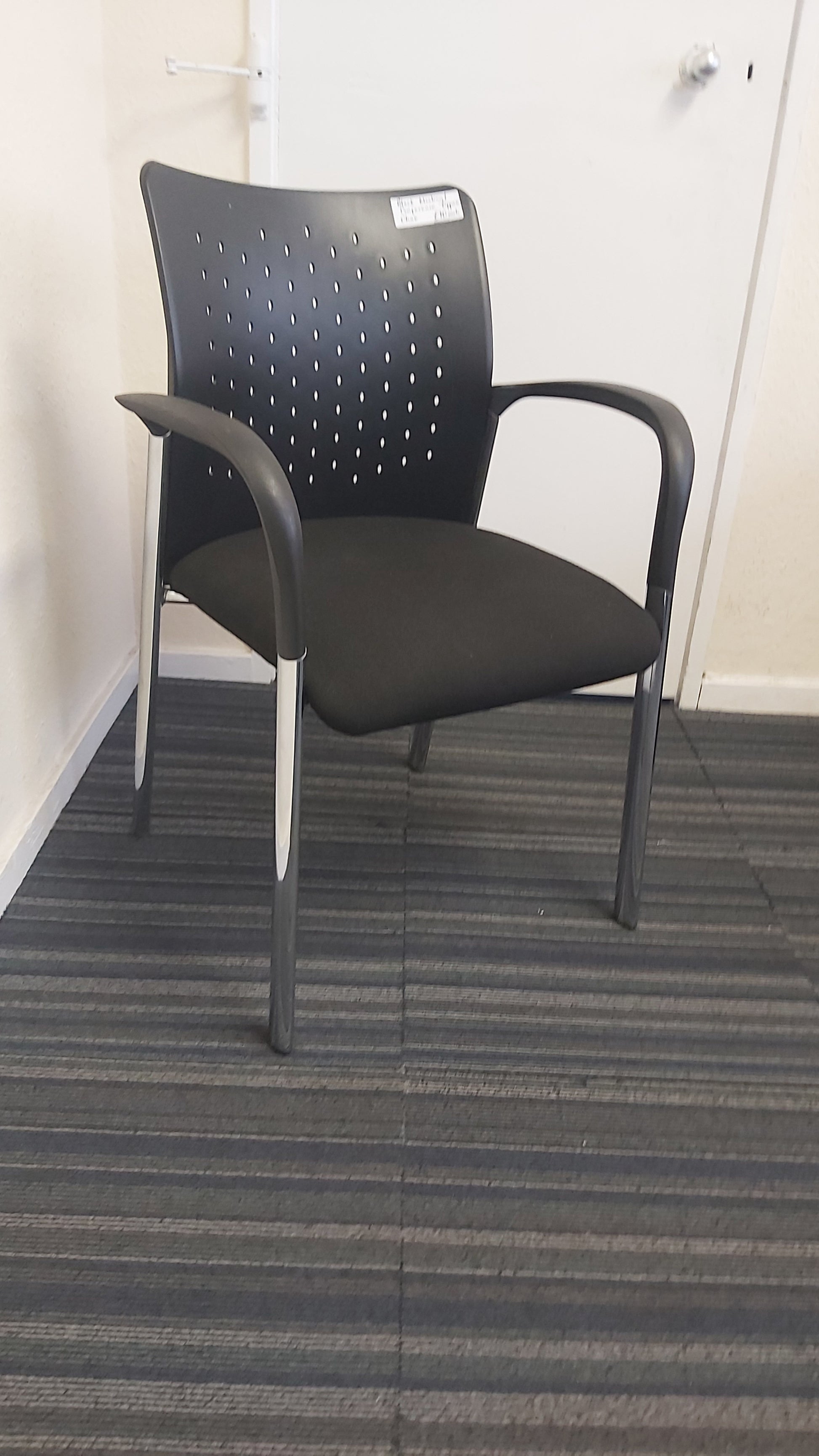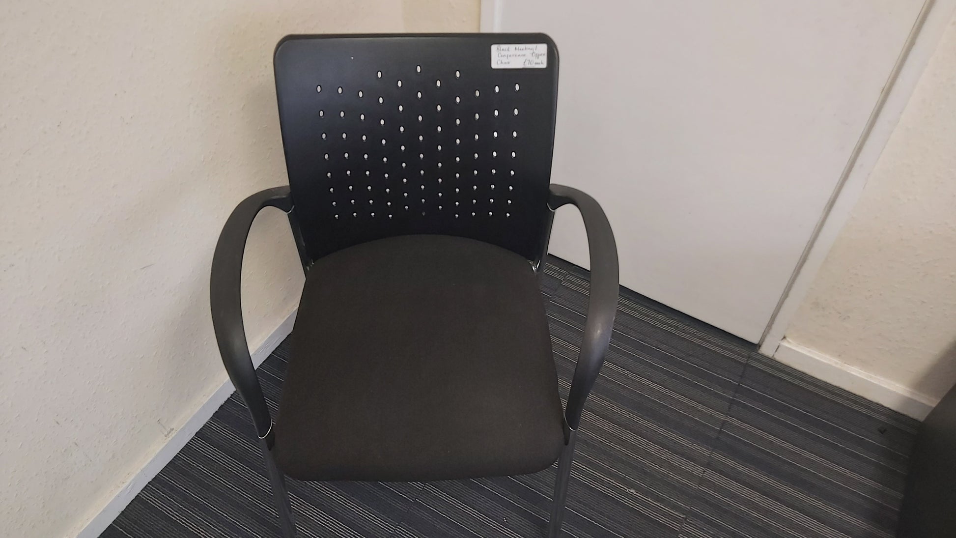Description: Breathable hardback with cushioned fabric seat, finished with black handles and chrome legs design.