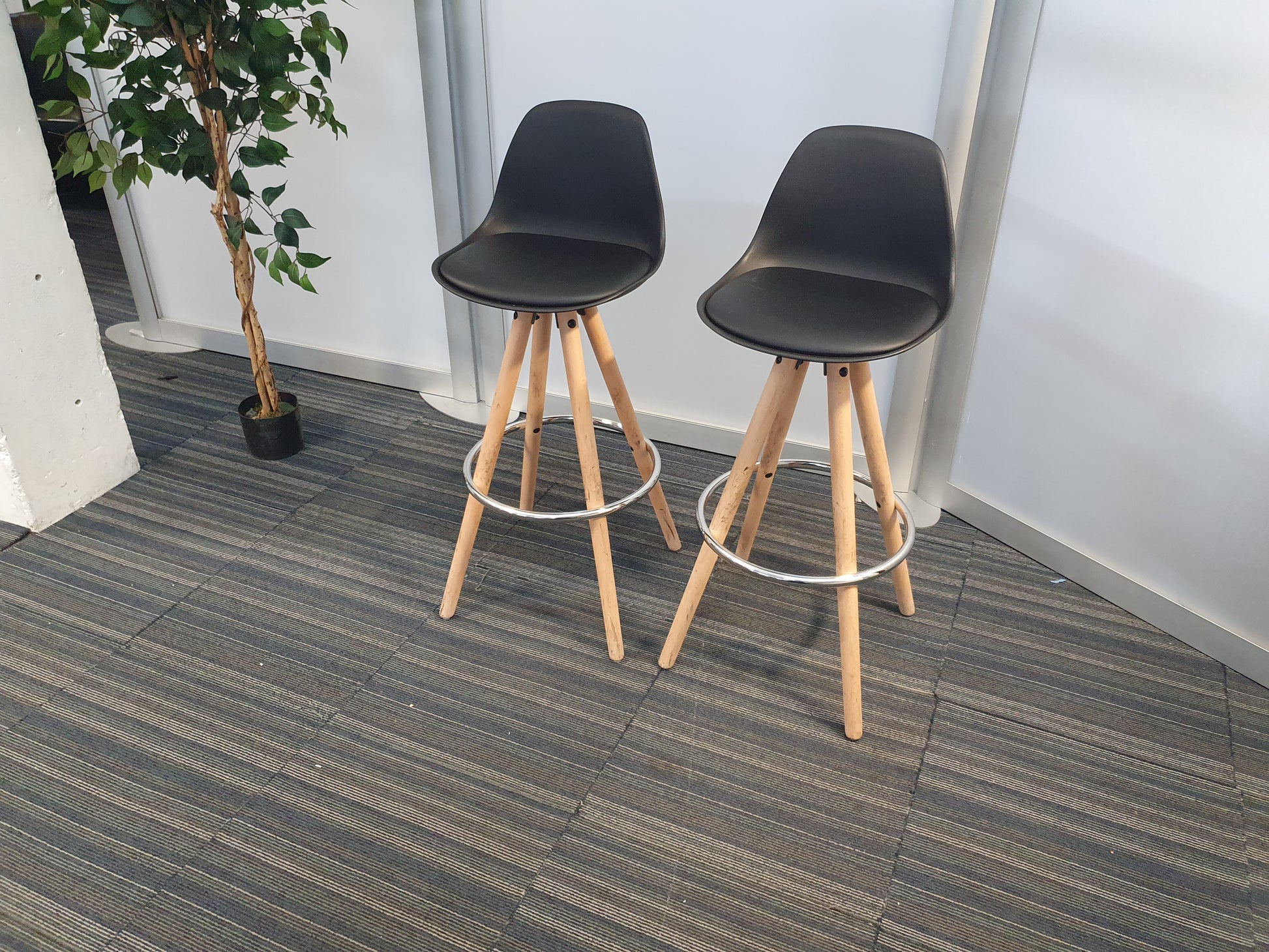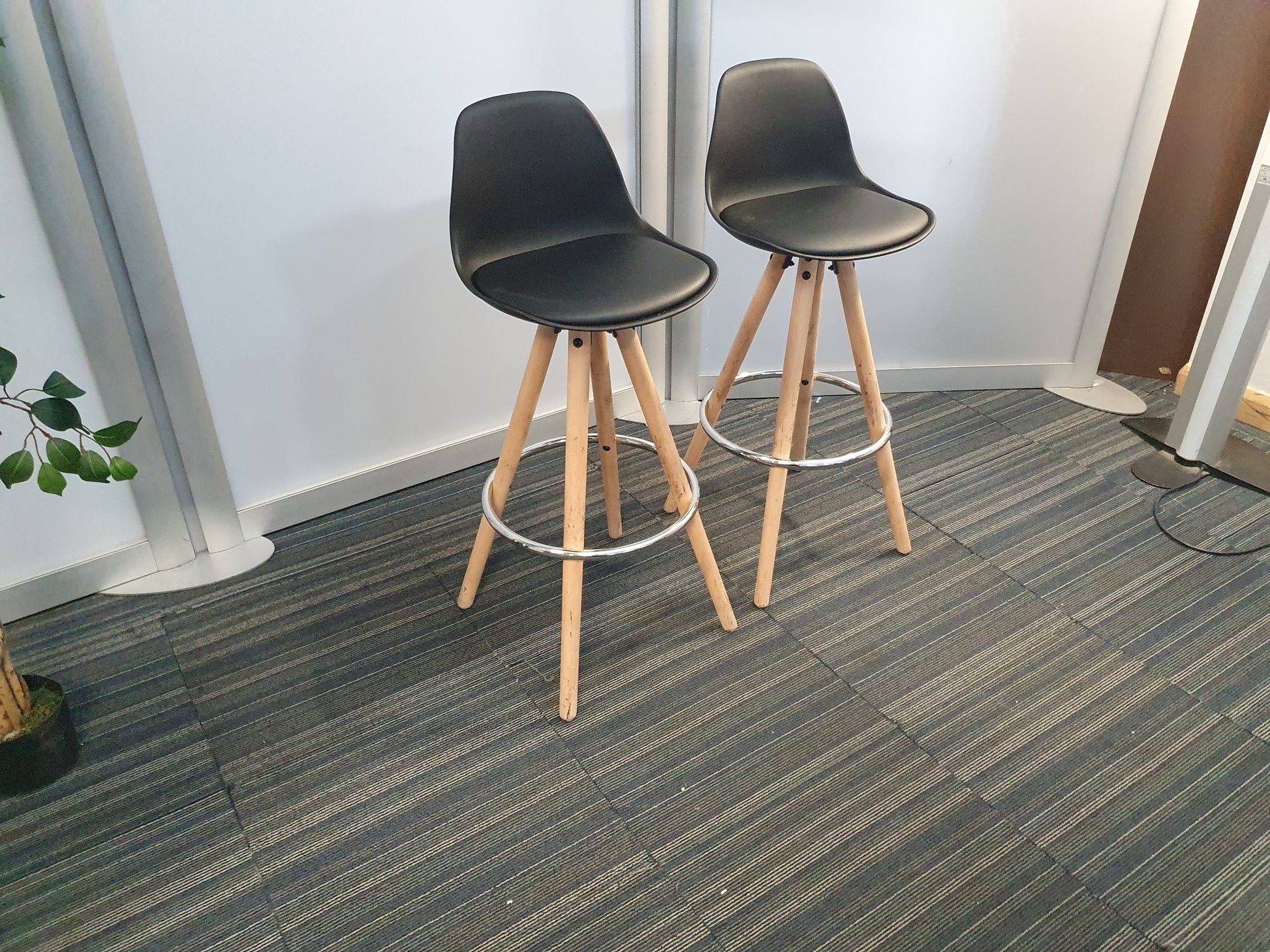 Black stool set dining kitchen breakfast bar stools with padded seat, fixed height
