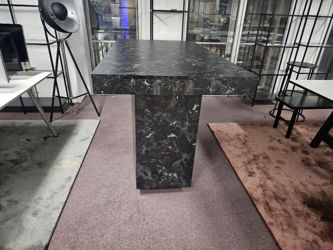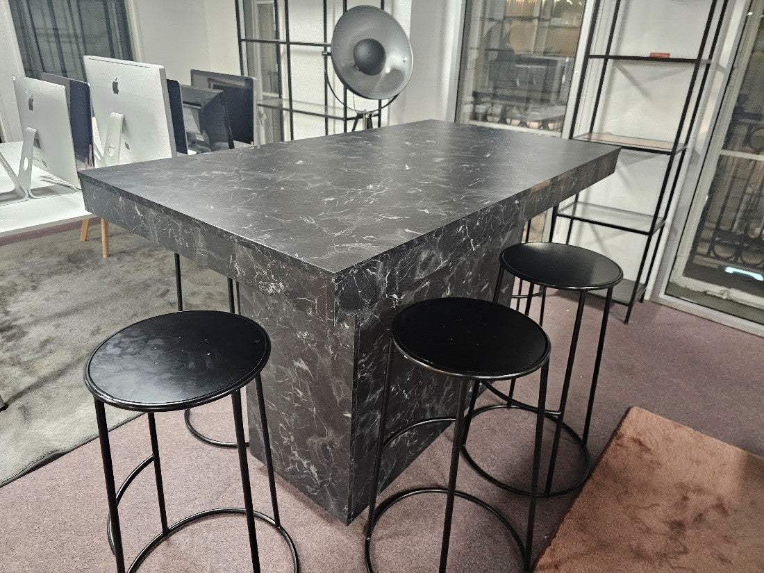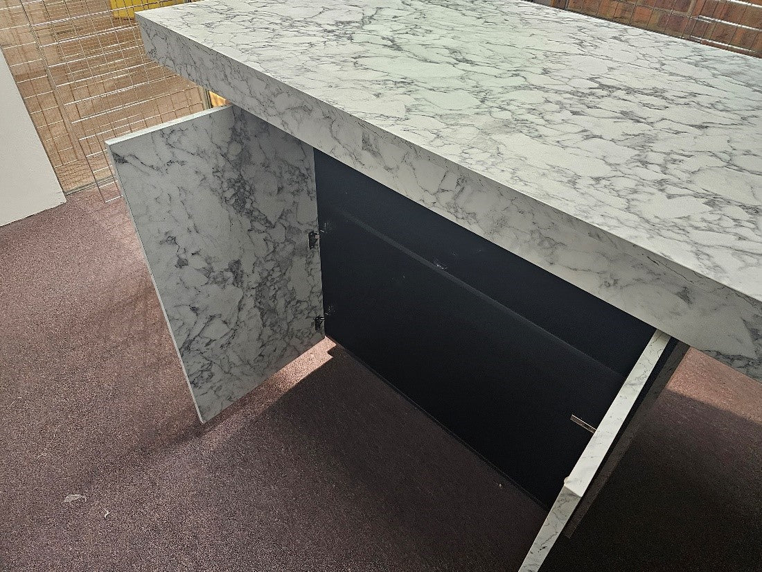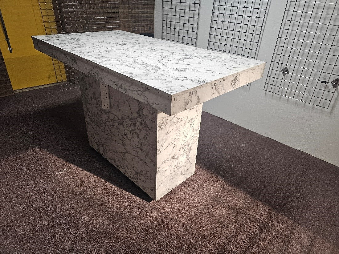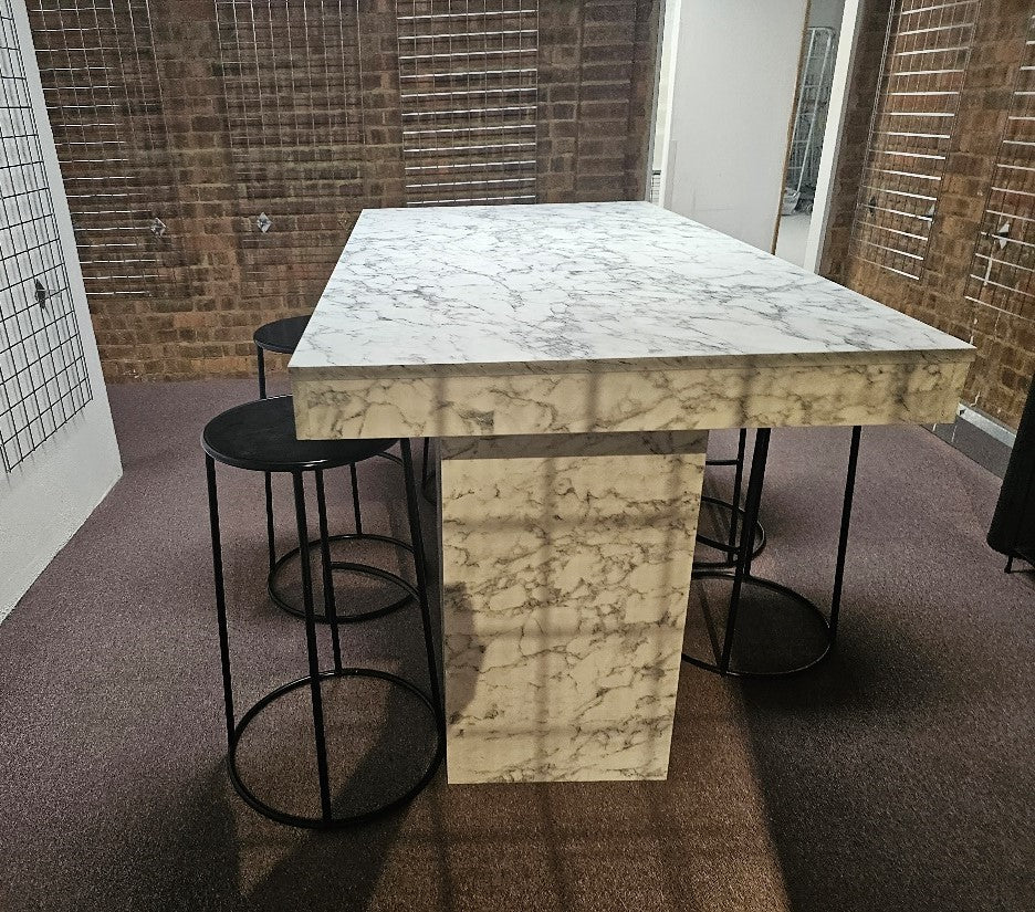 Marble-look High Breakfast Bar Kitchen Island (H=105cm D=85cm (table top depth 10cm) W=160cm)