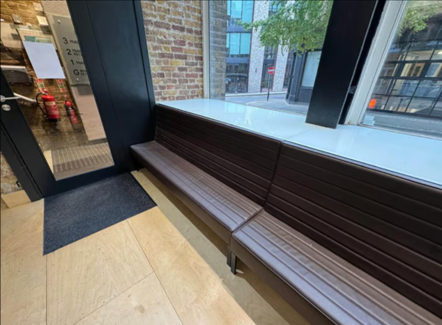 Office Reception Seating, Chocolate brown Marelli strip settee