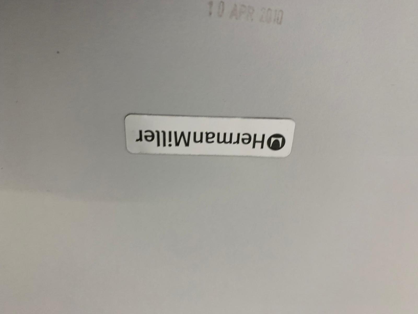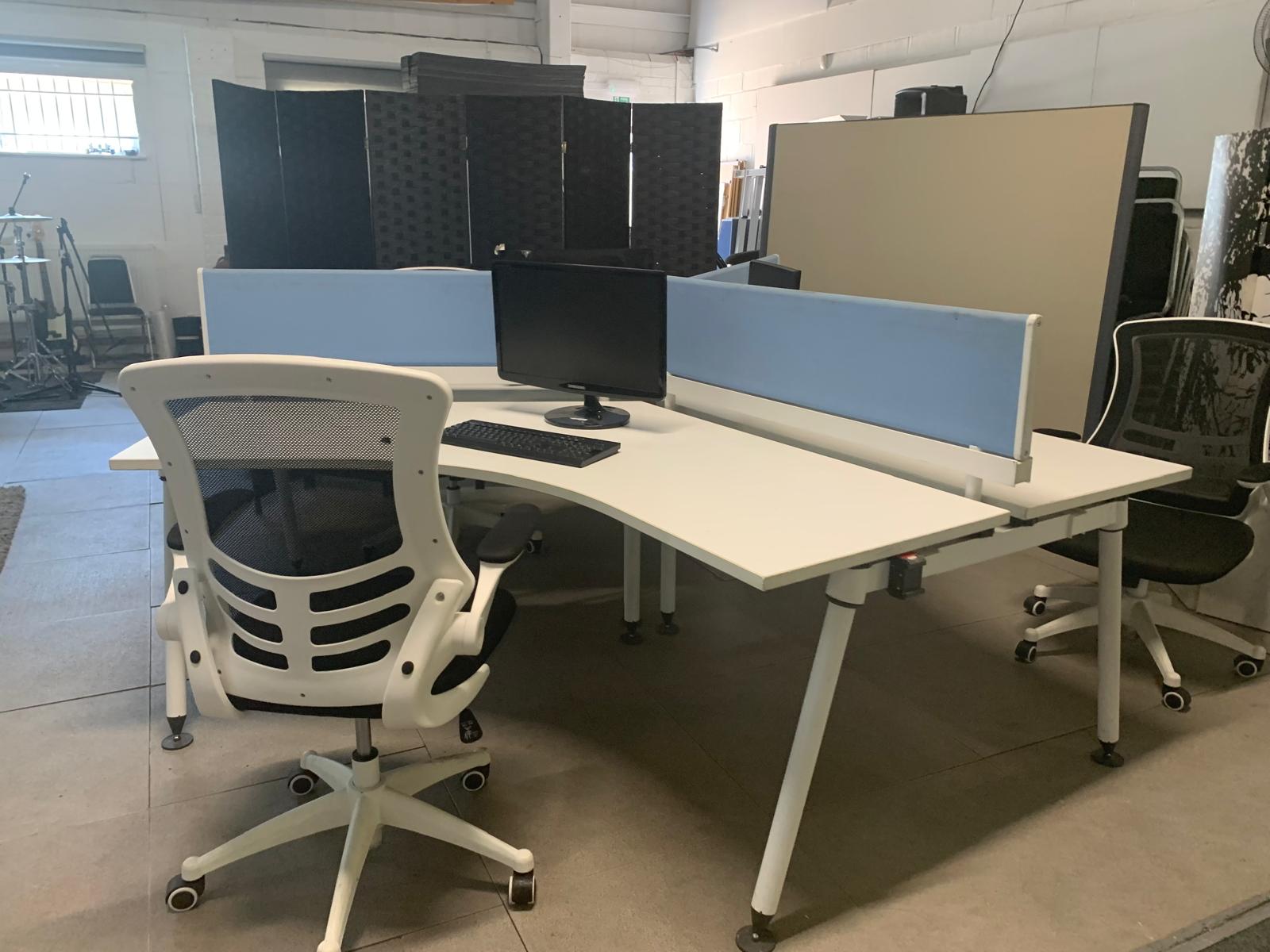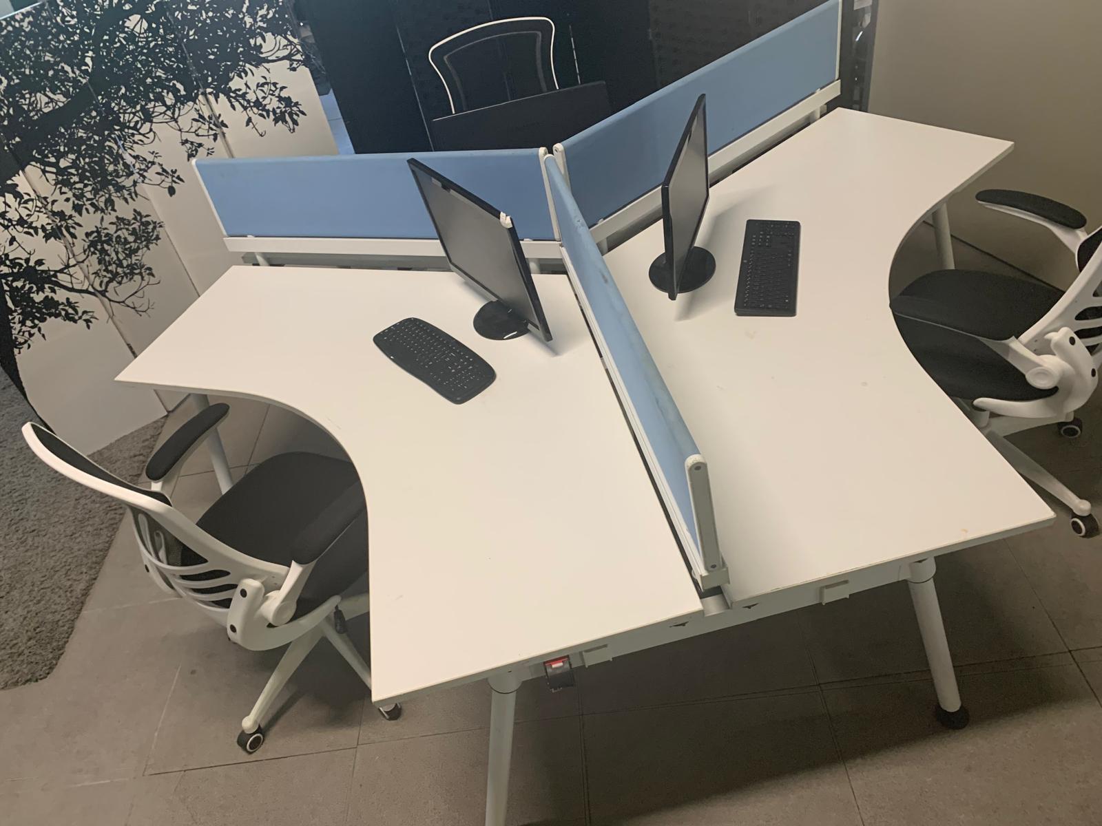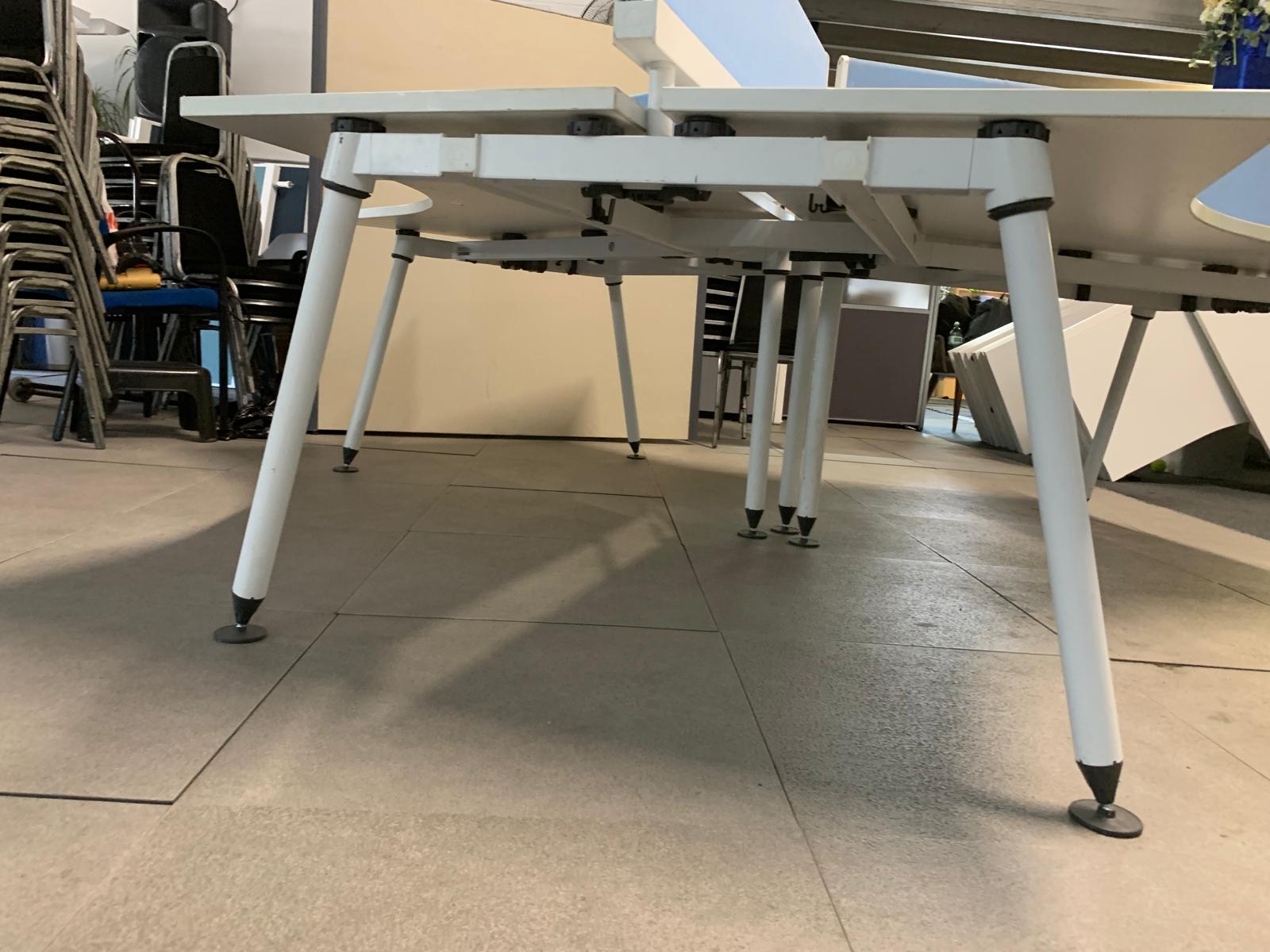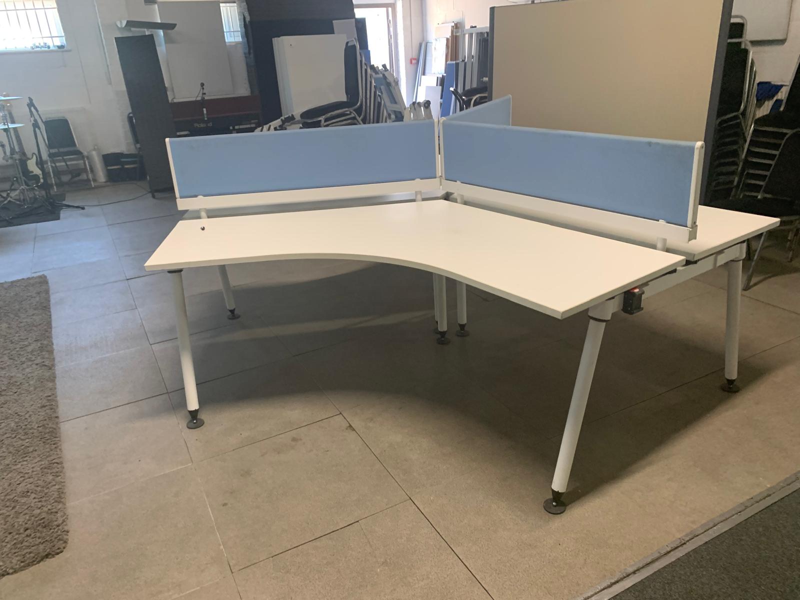 Herman Miller Three person office bench desk in white, 3 seater arc table