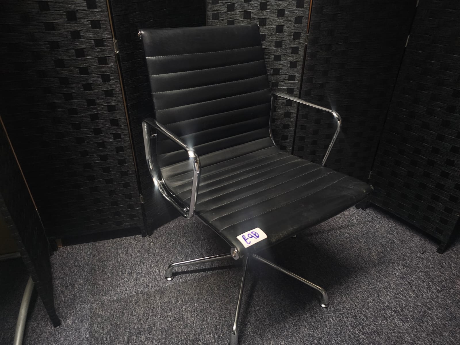 Black leatherette Swivel Meeting Chair- Ribbed Auto-Return Swivel Chair