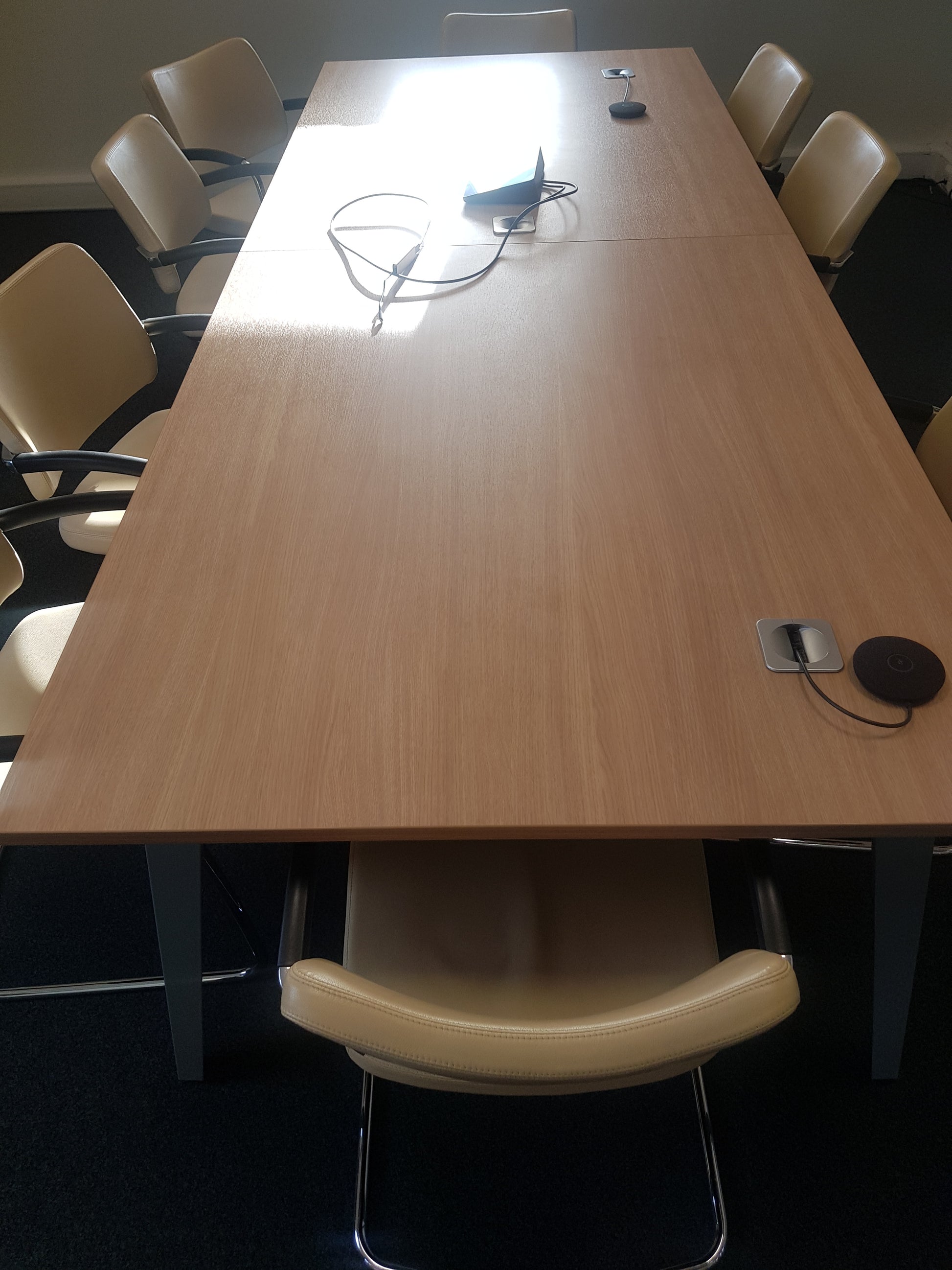 Used Boardroom table Wood finish 300cm x 120cm cable management