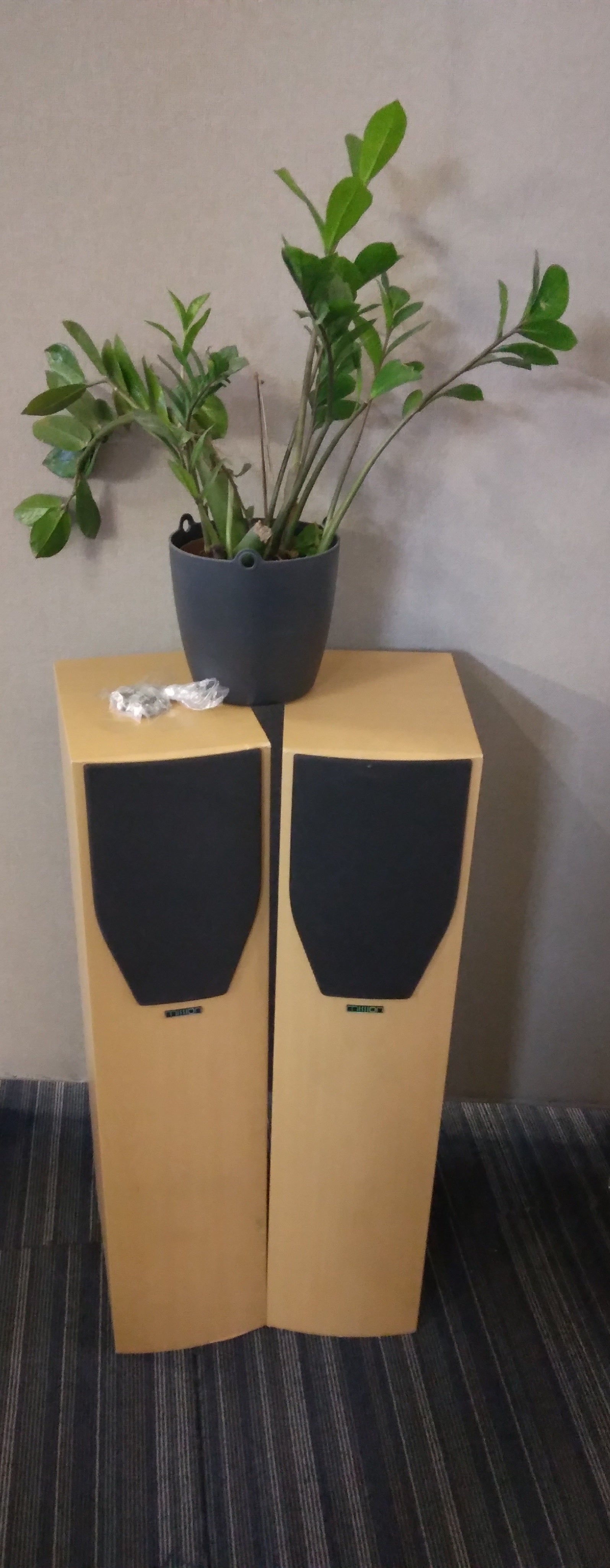 The beech coloured speakers are from the Mission brand and are standing speakers that are designed to provide a clear and immersive sound experience. The M73i model is a popular choice for audiophiles and music enthusiasts alike, with its powerful and clear sound output. Add these speakers to your home audio setup and enjoy a high-quality sound experience that is sure to impress.