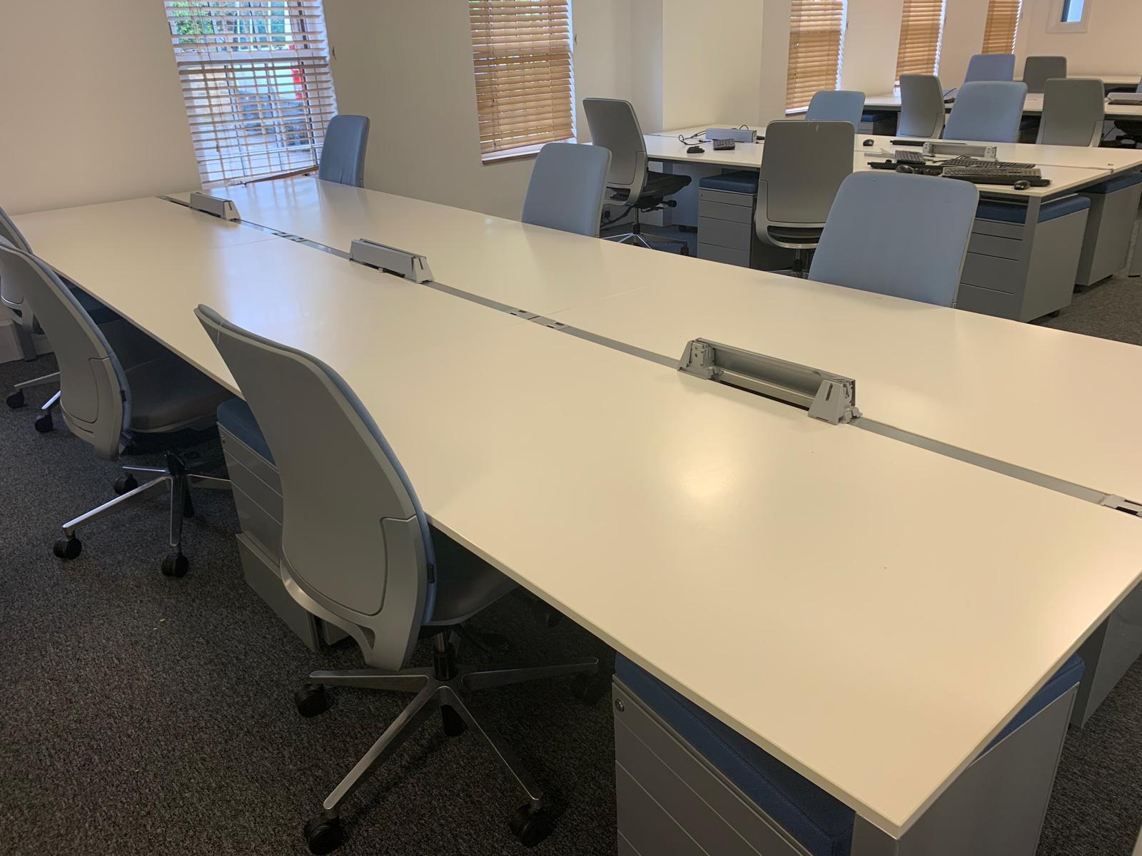 Used Six Person Pod Bench Desking System - 1600mm Tabletop - 480cm x 160cm
