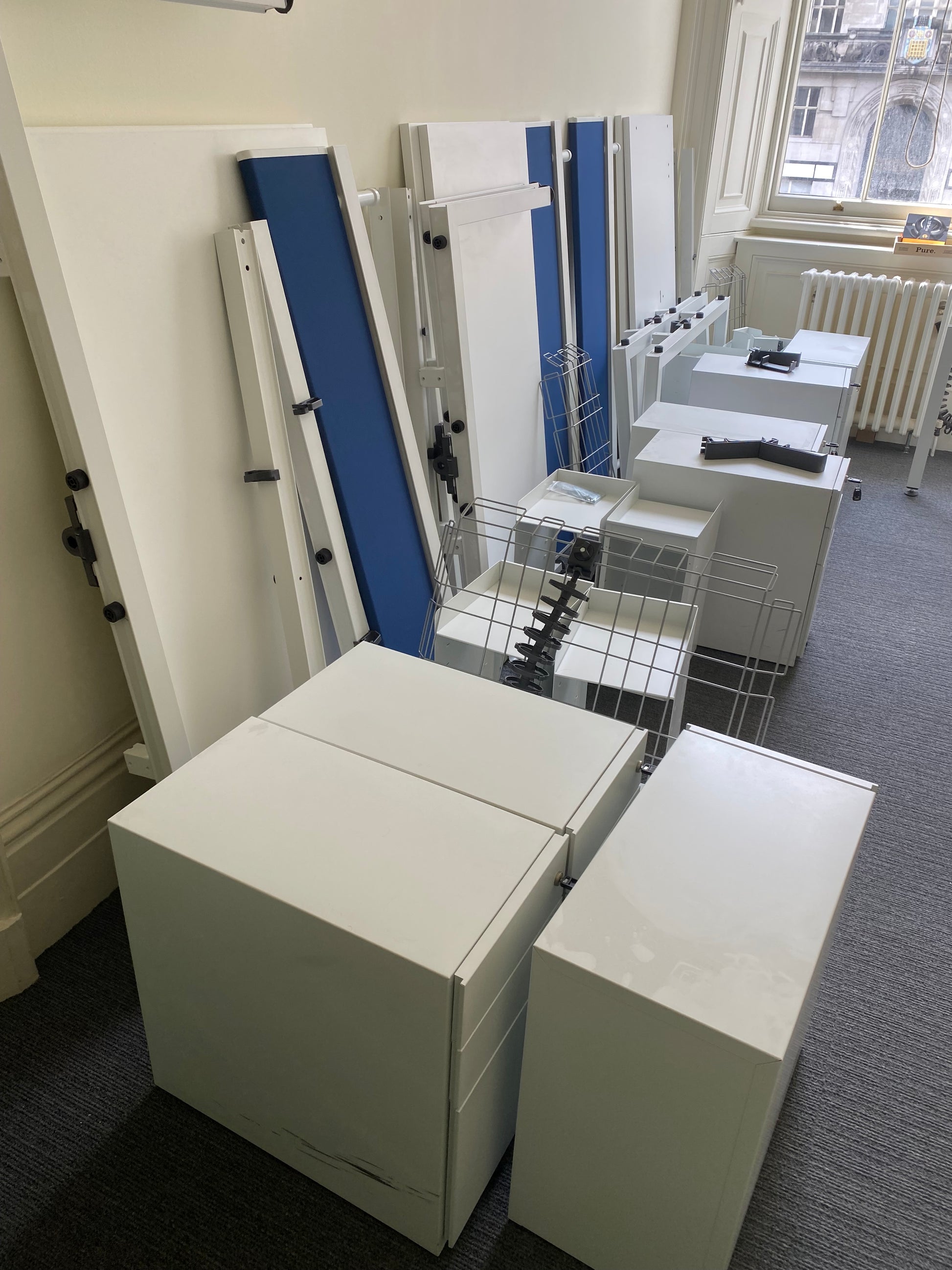 This advert is for the table along with the divider and does not include the drawers, cables and hard drive storage present in the photo as they are unavailable.