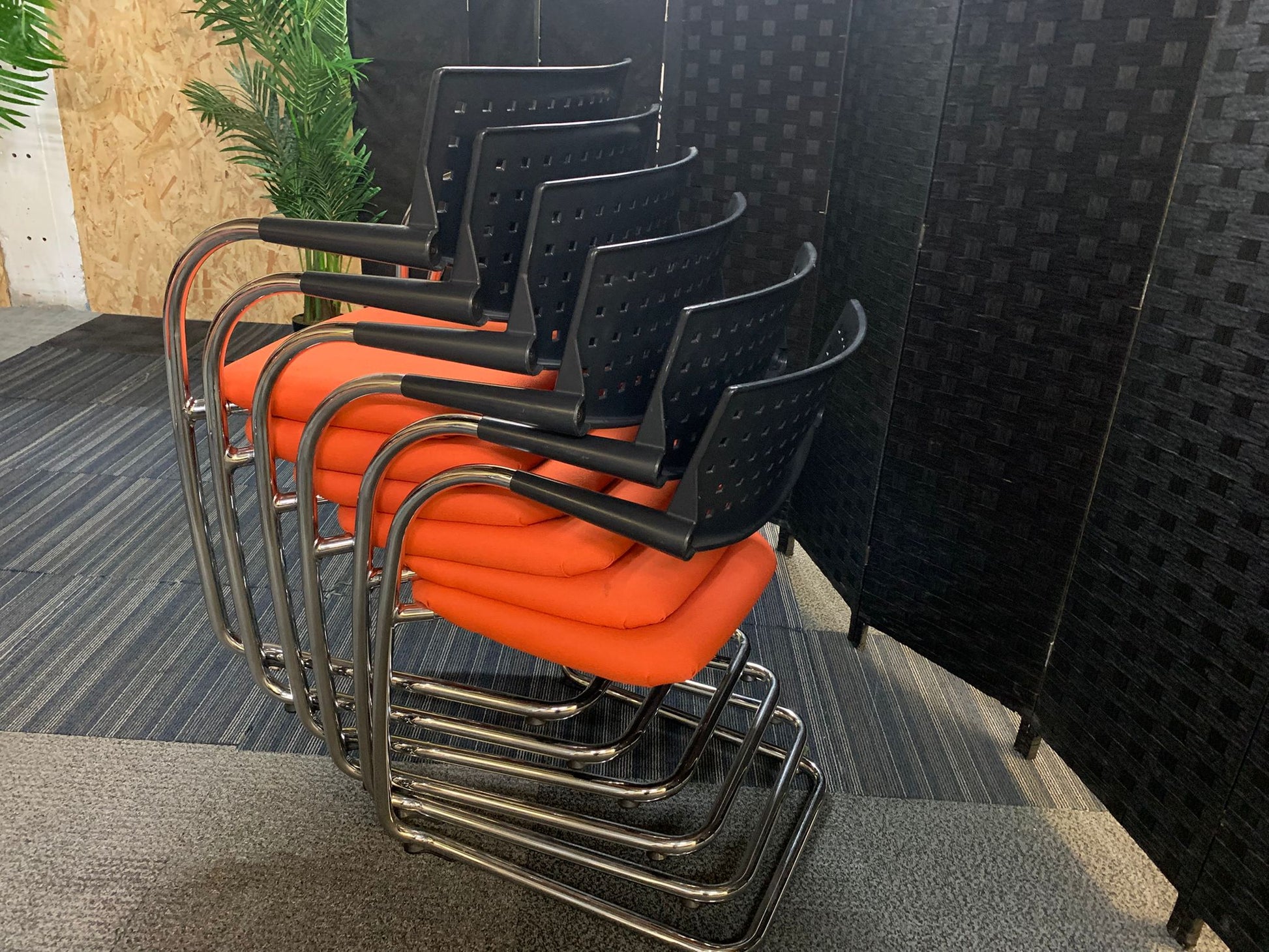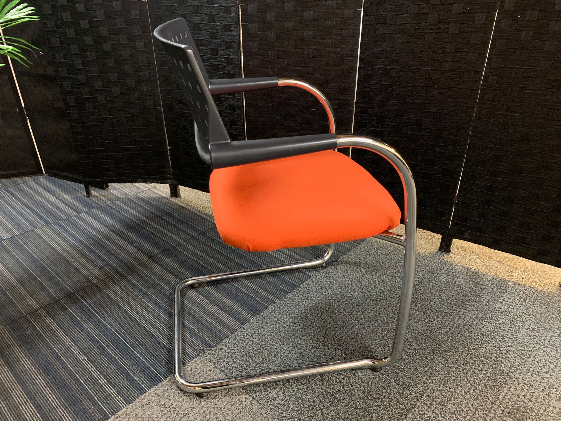 Vitra Visavis Meeting Chair – Black Plastic Back – burnt orange seat pad