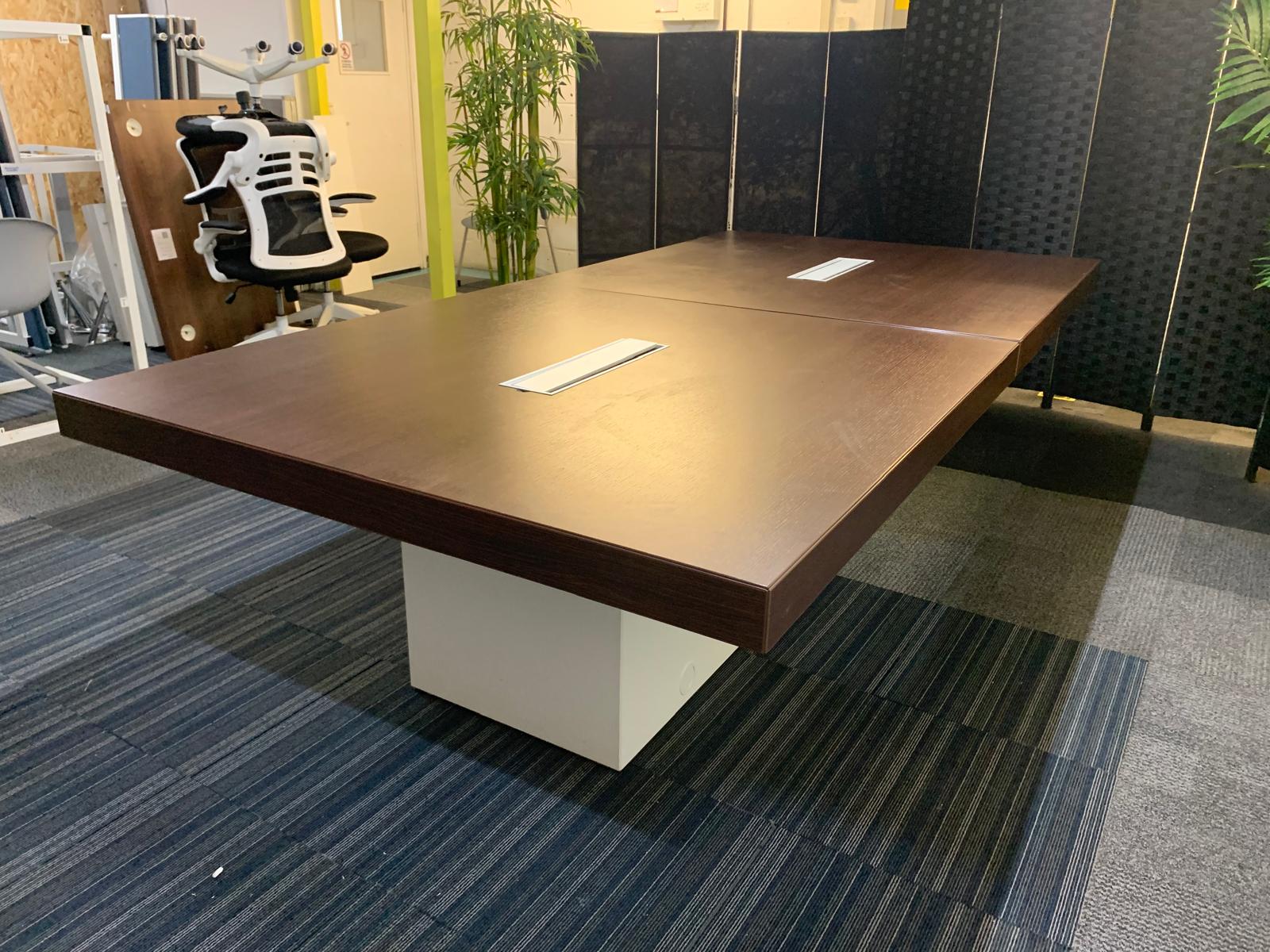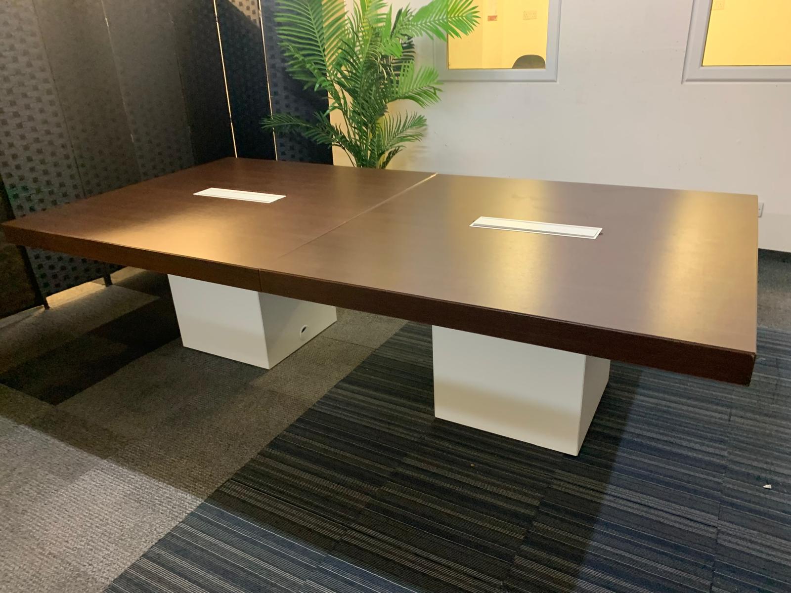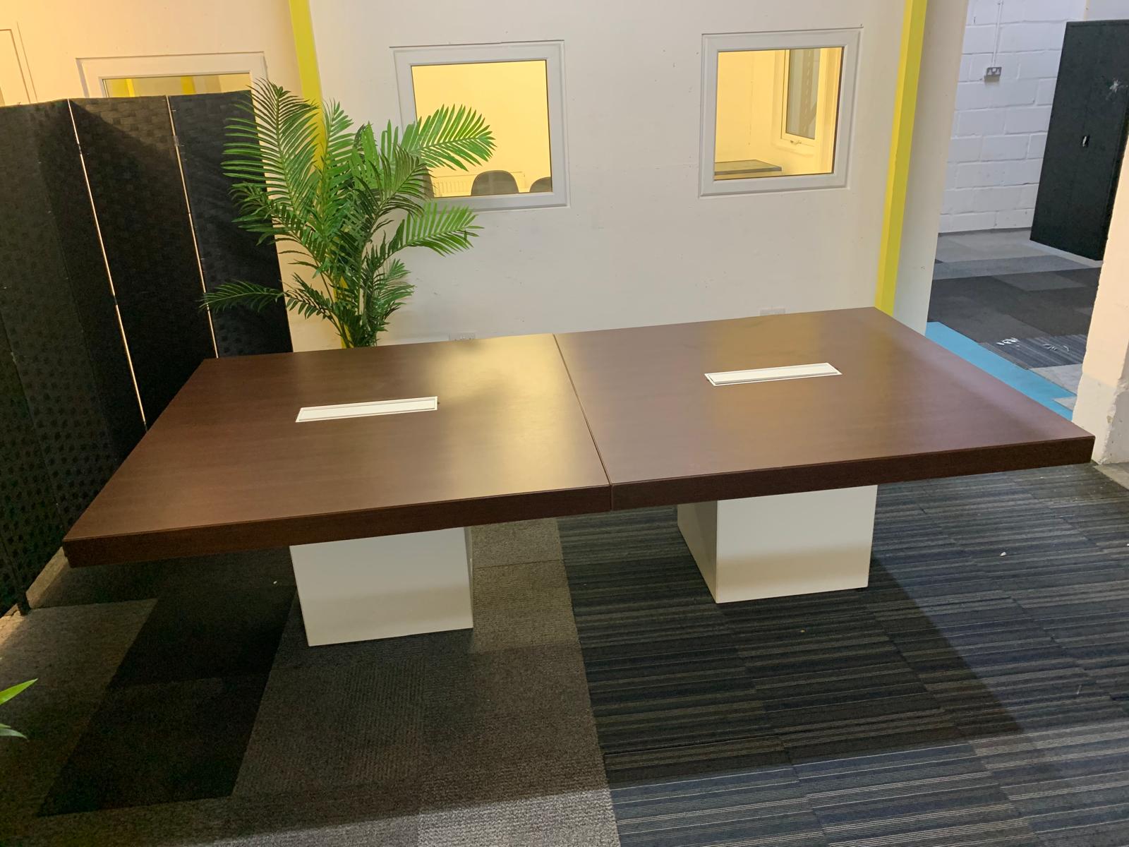 2 Walnut and White Extra Large Wood Finish Square Cube Base Office Meeting Conference Boardroom Table
