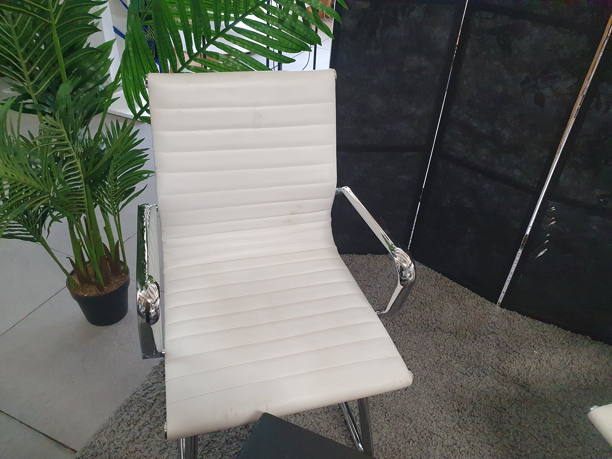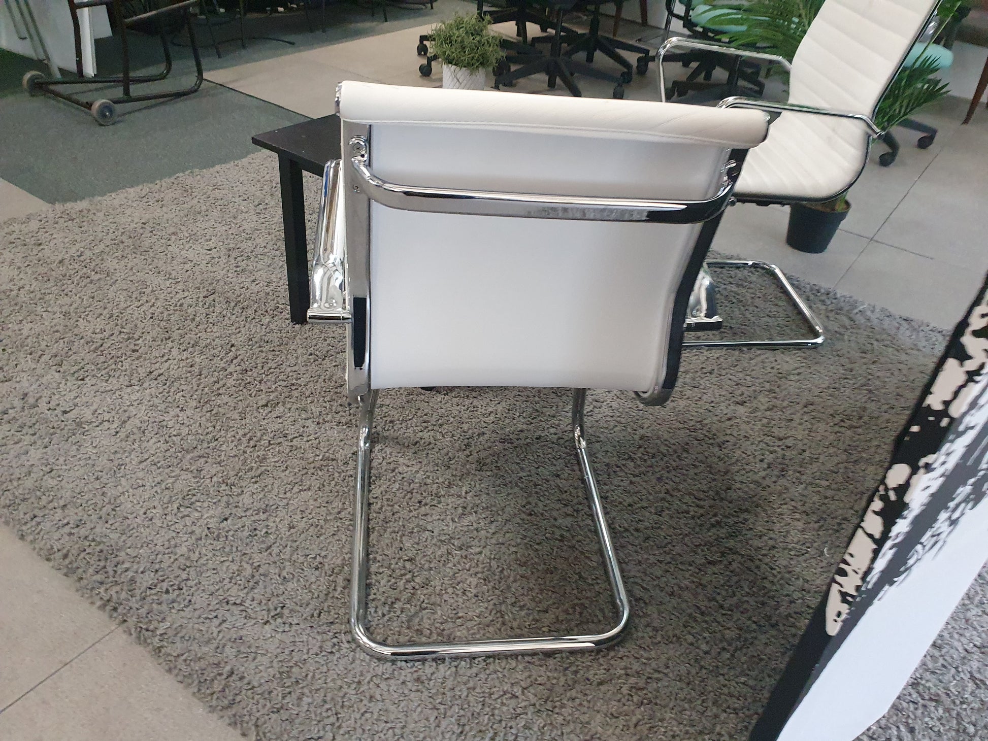 Set of 2 White Chrome Conference Meeting Chair, Ribbed Leather