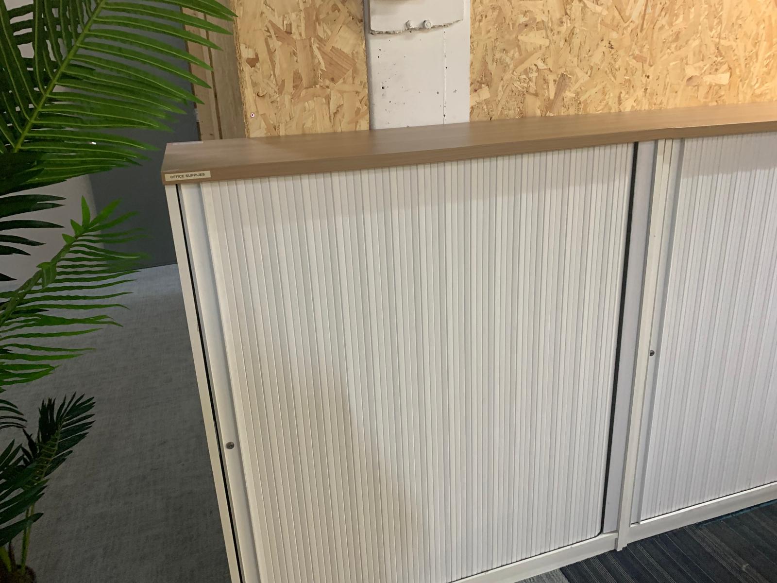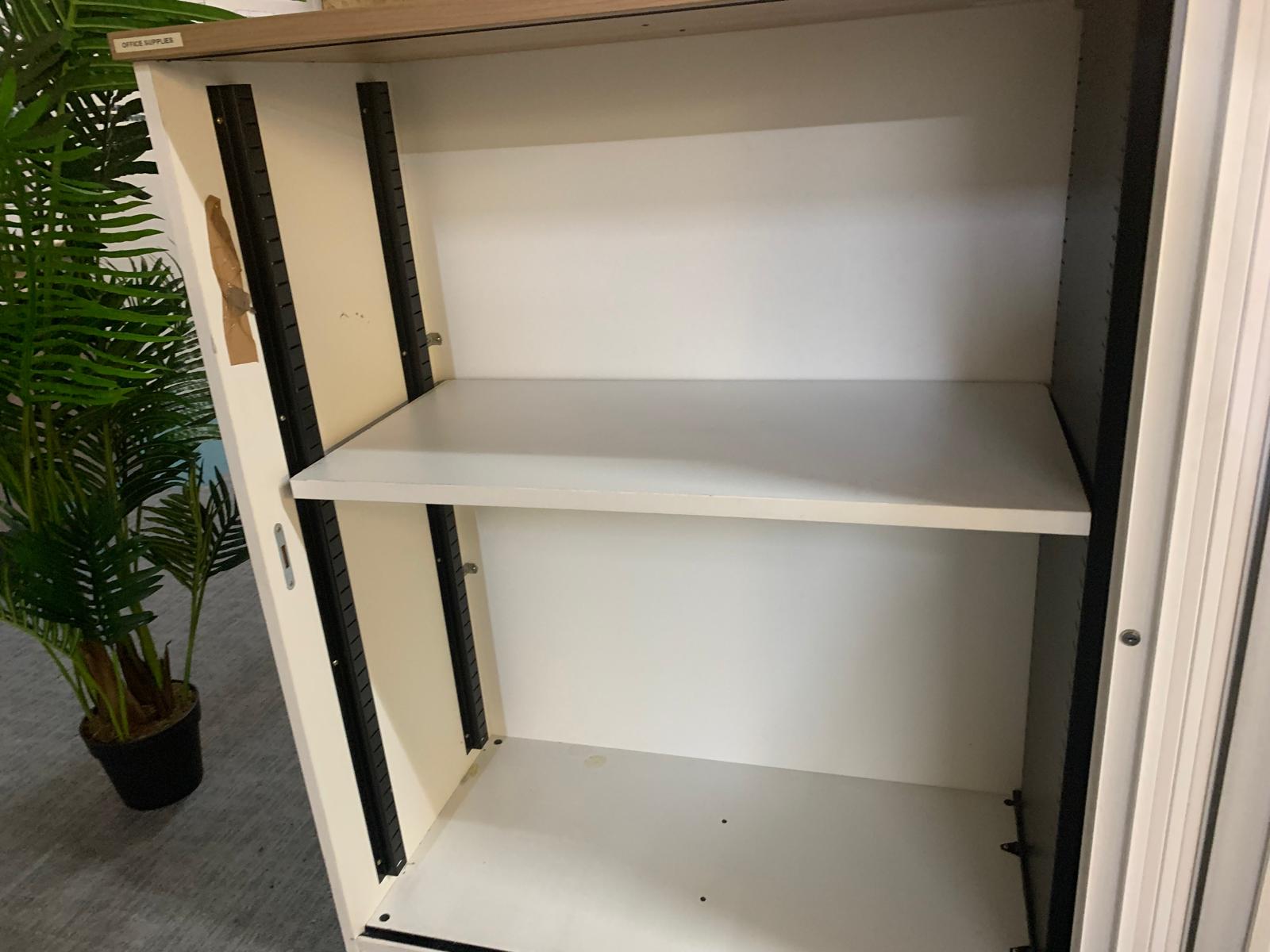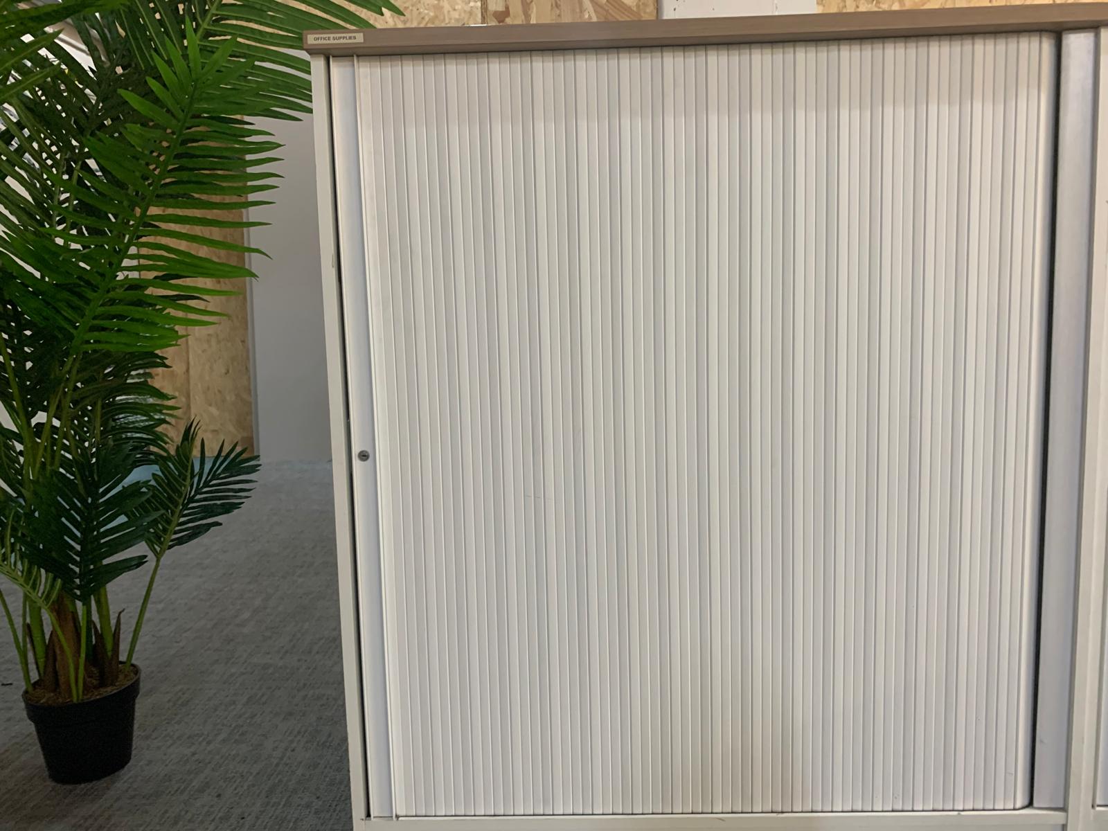 White office cabinet, storage unit, rolling door sliding door cupboard 110cm x 53cm H:123cm