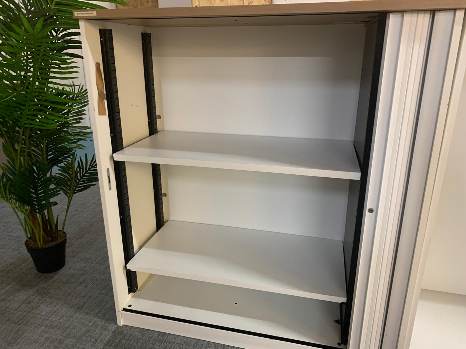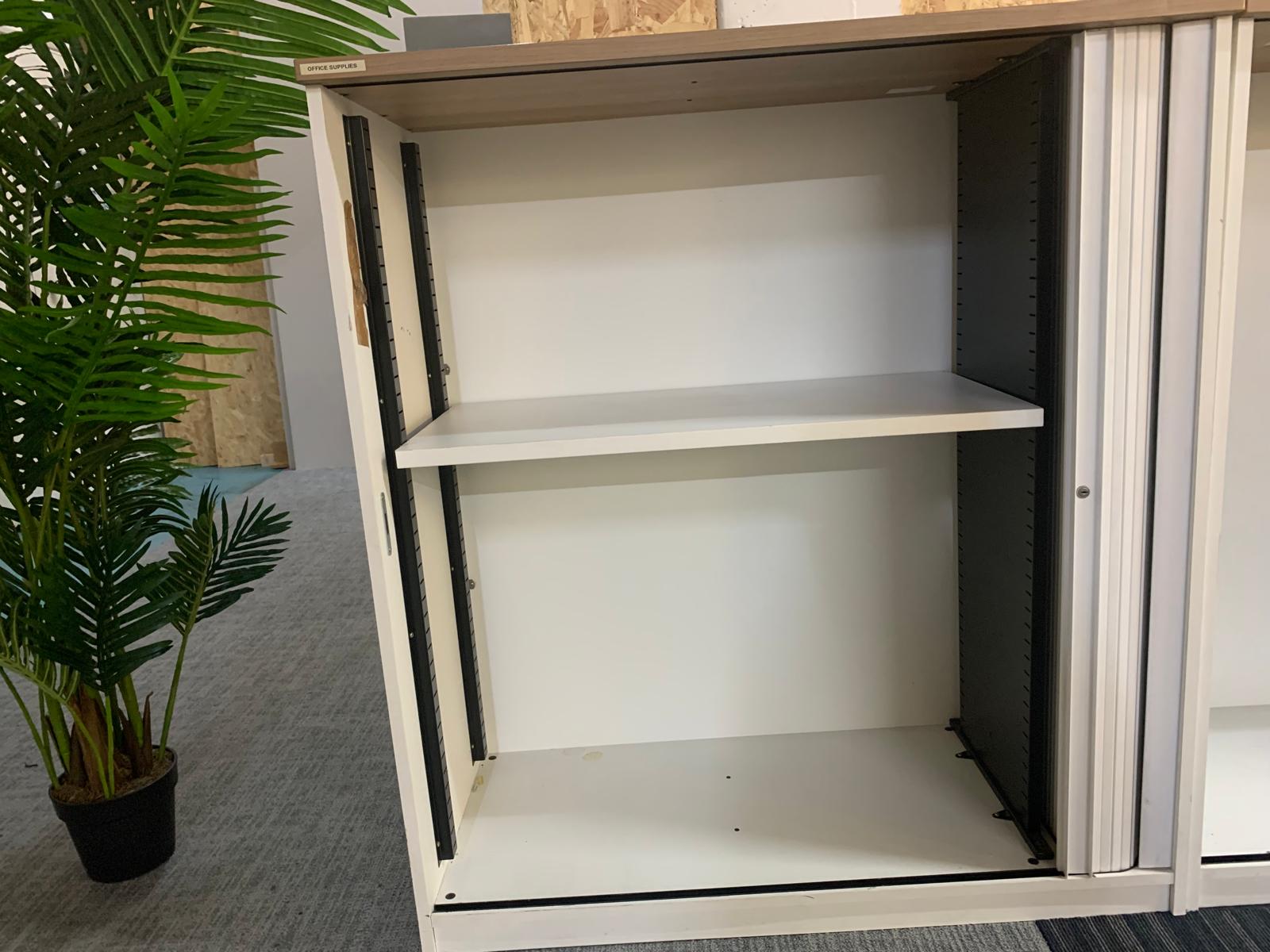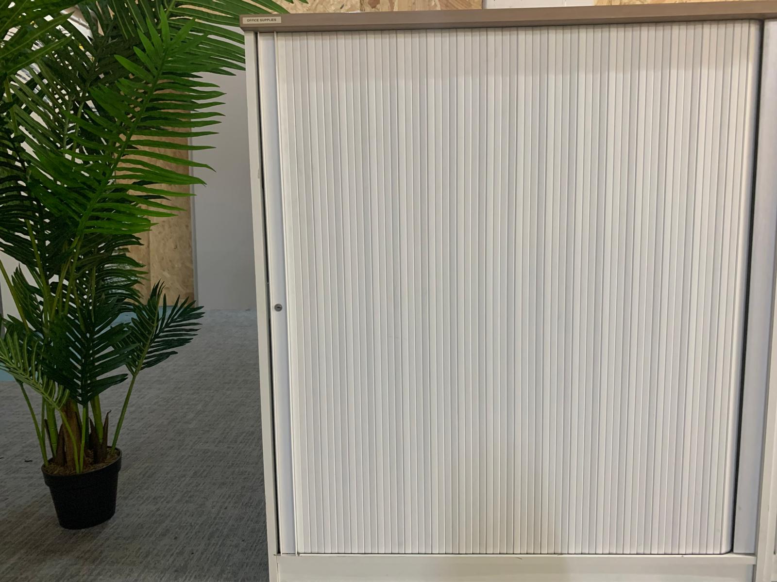 White office cabinet, storage unit, rolling door sliding door cupboard 110cm x 53cm H:123cm